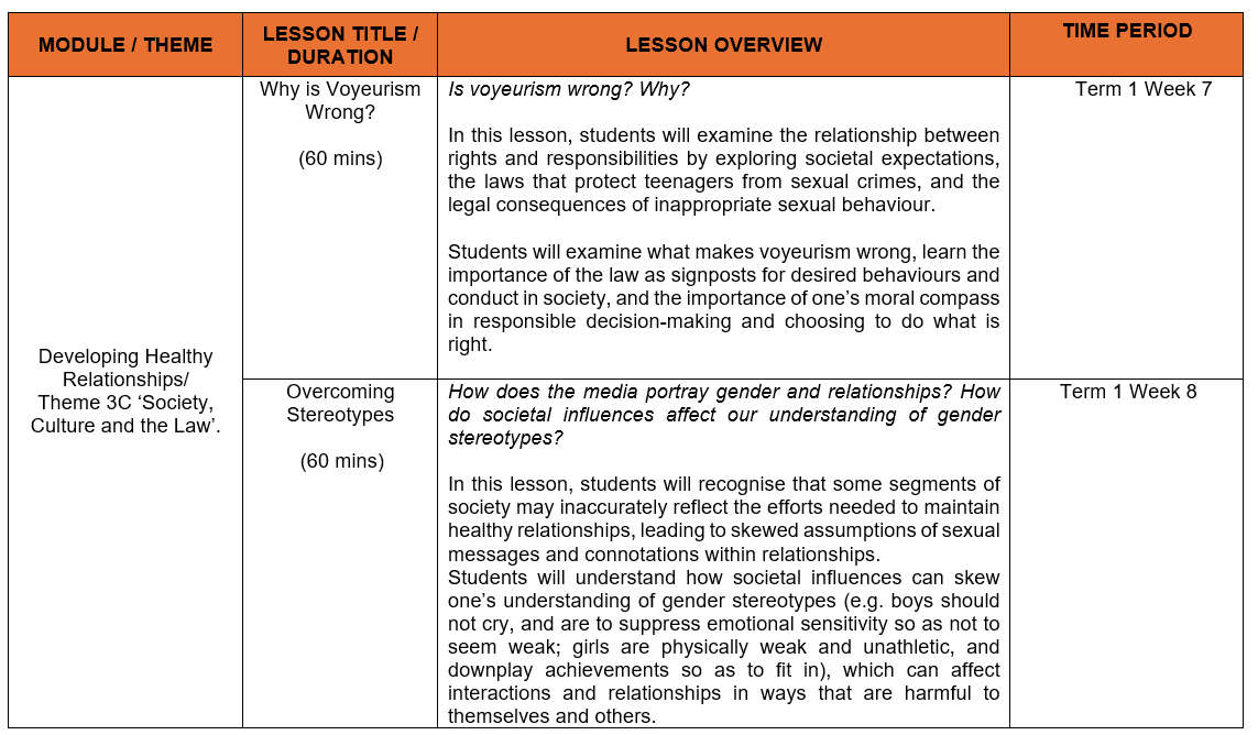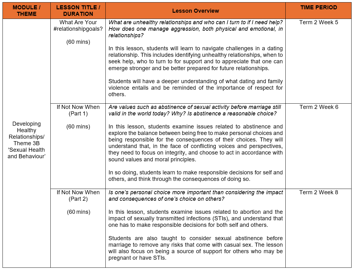 At Anderson Serangoon Junior College, the following Sexuality Education lessons will be taught in 2026: